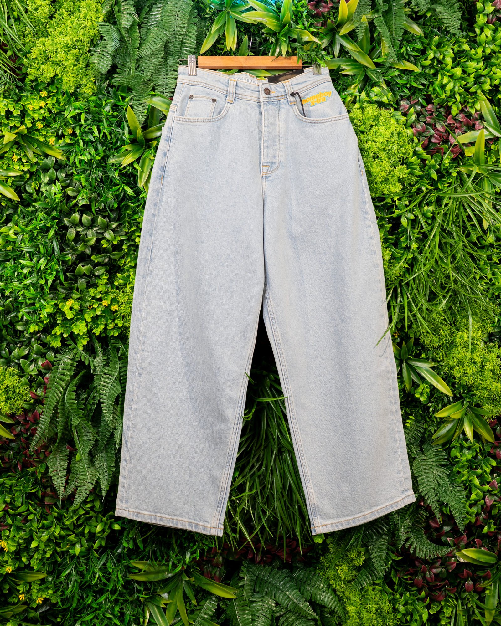 Notre jean baggy affiche un look vintage classique, fidèle aux détails clés des années 90. Parmi ceux-ci, la broderie multicolore « homeboy x-tra » sous la ceinture et la braguette arc-en-ciel.